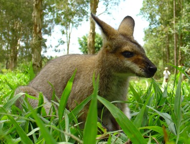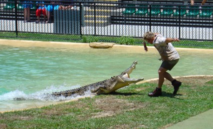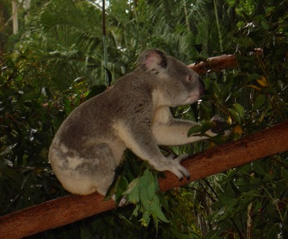 Natürlich gibt es im Zoo noch einiges anderes zu sehen. Wir sind nach den Krokodilen langsam durch den restlichen Zoo geschlendert und haben uns weitere Gehege mit Kängurus angesehen. Überall gab es kleinere "Enklaven" wo Koalas zu sehen waren. Weitere Gehege gab es für Cassowaries (endlich haben wir die mal gesehen, ich kannte die ja nur von den Warnschildern an der Straße), Emus, Dingos, Kamele und noch etliche Tiere mehr. Am Nachmittag gab es noch eine andere Show mit Steve und den Krokodilen zu sehen. Das war an einem anderen Gehege. Dort liegen 3 Teiche nebeneinander und Steve wechselt von einem zum anderen und macht seine Krokosachen. Lustig und interessant. Man kann sich im Zoo den ganzen Tag locker aufhalten. Es gibt zu den vollen Stunden überall im Zoo Vorführungen, wo z.B. die Otter gefüttert werden oder lehrreiches über Koalas erzählt wird. Wir hatten zumindest keine Probleme den Tag zu füllen.