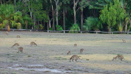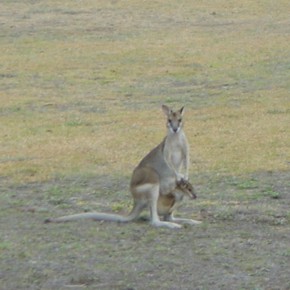 Inzwischen war es schon später und es dämmerte gewaltig. Wir hatten ja schon viel darüber gehört, das in der Dämmerung ein recht hohes Tieraufkommen auf der Straße ist und es verstärkt zu Kontakt zwischen Mensch und Tier kommt, wobei Tier und Fahrzeug meist nicht gut wegkommen. Da man auf diesen Pisten nicht so schnell fahren kann, war das Problem glücklicherweise ein wenig entschärft. Wir konnten jedes die Straße querende oder auf der Straße sitzende Känguru rechtzeitig sehen. Auch Kühe und Pferde links und rechts der Straße hatten keine Selbstmordgedanken und haben sich ferngehalten. Zumindest hatten wir in der kurzen Zeit so viele Viecher gesehen, wie sonst im ganzen Urlaub. Auf den letzten Kilometern zum Pub fing es immer mehr an zu regnen. Dort angekommen öffnete der Himmel wieder seine Schleusen und es kübelte wieder aus Eimern. Nach einem guten Essen sind wir aus irgendeinem Grund mit dem Wirt, seiner Frau und noch zwei anderen Leuten an der Theke ins Gespräch gekommen und noch bis spät in die Nacht hängen geblieben. Ein recht langer Tag war zu Ende und wir sind nur noch ins Bett gefallen. Morgen sollten wir schon wieder aufbrechen und die Ecke hier oben verlassen. Eigentlich schade. Land und Leute hier oben sind einfach toll.