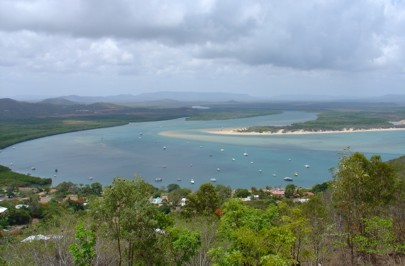 Das Programm für heute war recht vage. Ein bisschen Cooktown gucken und dann mal sehen. Zuerst haben wir auf dem Weg in den Ort bei den Black Mountains eingehalten, da diese praktischerweise direkt am Weg lagen. Die Black Mountains sind mehrere recht hohe Hügel aus schwarzen Granitmurmeln, die aus einem uns nicht bekannten Grund hier und nur hier aufgestapelt sind. Der nächste Stopp auf dem Weg war Archer Point. Von der Hauptstrasse zweigt ein, teilweise recht holpriger, Weg ein paar Kilometer zu einem Aussichtspunkt über den Hügeln rund um die Bucht ab. Hier oben steht ein Leuchtturm und es weht eine steife Brise. Herrliche Rundumsicht inklusive.