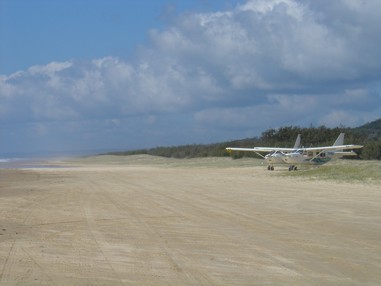 Der Strand ist auf Fraser Island sowas wie die Autobahn. Auf dem harten getrockneten Sand kann man recht gut heizen. Hier liegen auch die weiteren Attraktionen der Insel. Die haben wir jetzt durch unsere Panne natürlich nicht mehr gesehen. Wir sind mit dem inseleigenen Abschlepplaster weiter zum Ressort zurück gefahren. Der gute Mann war gerade am Stand irgendwelche Leute am freischleppen. Da unser Angler in die andere Richtung weiter wollte, sind wir kurzerhand mit dem Abschlepper zurück gefahren. Am Quartier der Air Fraser Jungs war kein Mensch zu sehen. Stephan hat dann noch kurz in die Zentrale angerufen und Bescheid gesagt, das wir wieder am Ressort seien. Wir haben uns dann den Rest des Nachmittages vor den einzigen Laden gesetzt und ein paar kühle Bierchen getrunken. So nebenbei konnten wir auch beobachten wie bestimmt alle fünf Minuten irgendeiner die Straße hochgeschleppt wurde. Hier waren auch durchaus riesige Kisten dabei. Also konnte man auch das Kunststück fertig bringen, sich mit einem fetten Riesenjeep hier festzufahren. Tsts. Diese Touristen :-) Wer aber dachte, wir hätten für den heutigen Tag schon genug Entertainment gehabt, der hatte die Rechnung ohne den Chef der Flieger-Asse gemacht. Unmittelbar vor dem Rückflug kam er auf uns zu und hat uns unvermittelt aber sowas von zur Sau gemacht. Er hat uns in übelstem Ton angekackt, was wir mit dem Auto denn dort auf dieser Straße gemacht hätten. Die Straße, wo wir das Auto stehengelassen hatten, hätten wir garnicht befahren dürfen und wir hätten somit den von uns unterschriebenen Vertrag gebrochen und seien regresspflichtig. Bumms. Das hatte erst mal gesessen. Nach der Landung haben wir noch ein wenig Öl ins Feuer gegossen und haben direkt nachgefragt, was denn mit einer Rückerstattung des Geldes für den Mietwagen sei. Der sei ja schließlich den halben Tag lang kaputt gewesen. Wir hatten natürlich das Vorhaben des Scheffe durchschaut. Er wollte uns mit seiner Aktion sofort so einschüchtern, das wir garnicht auf die Idee kommen sollten, überhaupt an einen Refund zu denken. Nun lief der nette Zeitgenosse zur Hochform auf. Mit übelstem Gossenton und diversen Schimpfworten, hat er uns wortgewandt klar gemacht, das die Straße verboten war, wir dort nicht hätten sein dürfen und deshalb Anspruch auf einen Scheiß hätten. Er wäre ja die Großzügigkeit in Person uns nicht 500 Dollar Vertragsstrafe aufzubrummen, das dürfe er laut Vertrag (wir hatten zwar unseren Kreditkartenbeleg schon lange zurück, aber wir wollten ihm die Illusion nicht nehmen).