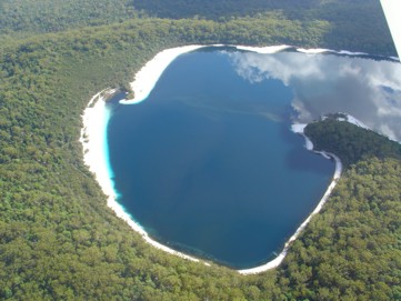 Der Tag fing eigentlich recht gut an. Alles lief glatt. Im Büro der Firma Air Fraser Island gab's die leidigen Formalitäten und das unvermeidliche Lehrvideo fürs Fahren auf Fraser. Das war gar nicht so uninteressant, denn es gab schon wichtige Tipps. Wie fährt man auf dem Sand, wo muss man besonders aufpassen, Tipps wenn man sich festgefahren hat usw. Man hat ja im normalen Alltag nicht so oft auf Sand zu fahren. Der Flug rüber war schön (die paar Minuten). Tolle Aussichten auf die Insel und die Seen auf der Insel. Wirklich idyllisch gelegen. Auf Fraser angekommen ging's am Quartier der Air-Fraser - Leute zur Fahrzeugausgabe. Wir bekamen ein kapitales Ungetüm. Einen fetten Pajero. Es gab eine kurze Einführung, wo man herfahren konnte, was recht gute Wege sind und was weniger gute Wege sind. Vom Eurong Ressort aus sind wir dann erst einmal zum Lake Mc Kenzie gefahren, also landeinwärts. Die Fahrt geht allgemein recht gemütlich voran, da man auf den einspurigen Sandpisten nur sehr langsam vorankommt und auch immer auf entgegenkommende Fahrzeuge achten muss. Dann muss man sich einigen, wer zurück in eine Ausweichbucht fährt. Also Durchschnittsgeschwindigkeit dürfte so bei 20 liegen. Man kann schneller, aber teilweise muss man auch im Schritttempo durch fette Löcher oder halbmetertiefe Spurrillen fahren. Der See ist wunderschön gelegen und komplett von Wald umgeben. Das Wasser ist wohltemperiert und glasklar. So richtig um kurz mal reinzuhüpfen. Es waren zwar viele Leute da, aber man konnte nicht sagen, das es überfüllt war. Also alles ganz angenehm.
