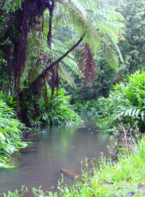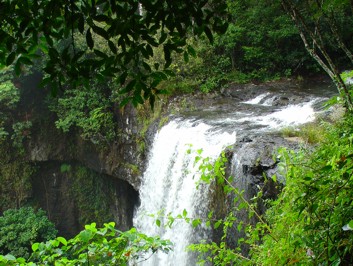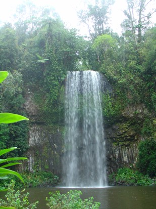 Am Morgen ging's recht fix von Port Douglas nach Cairns. Dort mussten wir gegen 10 Uhr 30 das Auto tauschen. Im Stadtdepot haben wir den 4WD abgestellt und einen Pulsar übernommen. Zuerst etwas ungewohnt (und irgendwie bin ich als Rechtshänder nie so richtig damit warm geworden) : das Auto war ein Schaltwagen ! In Cairns haben wir uns nicht lange aufgehalten. Ein kurzer Einkauf und aufladen der Geldreserven, das war's auch schon. Die ganze Zeit hatte es auch mehr oder weniger heftig geregnet. Es wurde Zeit, das wir aus der Ecke da oben wegkamen, es wurde eindeutig zu feucht. Wir haben für unseren weiteren Weg die Strecke durch die Berge gewählt. Lt. Reiseführer sollte dies die landschaftlich schönere Strecke sein. Zumindest war die Landschaft hier nicht wesentlich anders als im Regenwald weiter nördlich. Unglaublich grün und üppig, wenn nicht sogar verschwenderisch reich bewachsen. Angenehmer Vorteil : Hier war es ein paar Grad kühler als sonst überall.