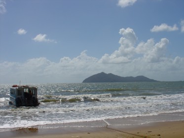 Das Frühstück ist heute der frühen Abfahrt des Wassertaxis zum Opfer gefallen. Mit dem sind wir am Morgen nach Dunk Island rübergefahren. Dort angekommen bekommt jeder eine Einweisung, was wo wie auf der Insel zu finden ist. Welche Aktivitäten Geld kosten und welche Wassersportsachen umsonst sind. Interessanterweise machte sich auch hier niemand großartige Gedanken über Stingers. Auf die Frage eines Mädels gab es als Antwort : Jaaaaaa, könnte sein, aber die Wahrscheinlichkeit ist gering ..... . Wir haben uns dann für einen Spaziergang auf den Berg der Insel entschieden. Angeblich sollte man von dort oben einen tollen Blick haben. Also durch das Ferienressort der Insel, am Flugplatz vorbei und durch den Wald mit den unendlich vielen Mangobäumen (und fetten Spinnen an den Bäumen) den Berg hinauf. Da wir aber erstens heute noch recht weit fahren mussten und deshalb nicht so lange bleiben wollten und zweitens das passende Wassertaxi gegen 13 Uhr wieder zurückfuhr, haben wir den Aufstieg nicht ganz geschafft, sondern sind bei 3/4 wieder rumgedreht. Schade.