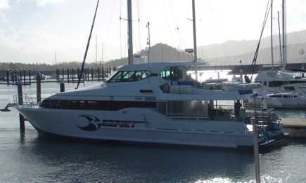 Unser zweiter Tag auf dem Wasser. Auch wieder morgens unanständig früh. Start war vom Bootshafen in Airlie. Unsere heutige Tour sollte uns mit der (oder dem ?) Reef Jet zum Outer Great Barrier Reef bringen. Dort wollten wir schnorcheln und tauchen. Auch diese Tour war nicht vollgestopft mit Leuten, auf dem Boot war immer genug Platz und man war sich nie im Weg. Schnell ging die Fahrt mit mächtig Power raus aufs Riff. Ich bin mir nicht mehr sicher, aber ich denke, die Fahrt hat ca. eine Stunde gedauert. Am Ankerplatz angekommen (Bait Reef) war das erste was ich gesehen habe eine Schildkröte, die das Boot umkurvte. Na wenn das kein gutes Zeichen für den restlichen Tag war. Der Ablauf an Bord war eigentlich recht locker. Wer schnorcheln wollte, konnte das jederzeit tun. Ausrüstung stand in rauen Mengen bereit. Die Intro-Diver wurden in Gruppen sortiert und so wusste man ungefähr wann man wieder da sein musste. Da meine Gruppe eine der letzten war, konnte ich unbesorgt fast den ganzen Tag kommen und gehen, wie ich wollte. Ich habe am Anfang einen langen Schnorchelausflug gemacht und nachher nochmal zwei kürzere.