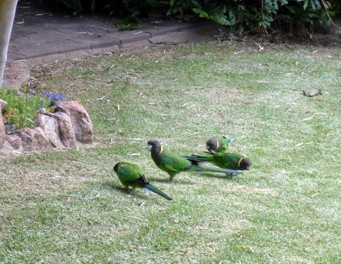 Unterkunft haben wir dann am Ortsausgang im "Edge of the forest" Motel gefunden, welches ganz gut aussah. Der Besitzer, ein "waschechter" Aussie mit Bierbauch, kurzer Hose und den typischen Arbeitsstiefeln war ganz sympathisch und so sind wir hier auch hängen geblieben. Den Rest des Nachmittags haben wir damit zugebracht im Grünen zu sitzen, zu lesen und den vielen Papageien zuzuschauen, die sich unweit von uns ums Futter balgten. Am Abend sind wir in den Ort rein und haben uns im örtlichen Pub, der Settlers Tavern, niedergelassen. Hier sind wir auch noch länger geblieben, denn nach den Essen fing das Karaoke an, an dem sich vielfältig beteiligt wurde. Da waren ein paar ziemlich lustige, gute aber auch denkwürdige Darbietungen dabei. Zum Thema "denkwürdig" sage ich nur "Stayin Alive" von den Bee Gees vorgetragen vom örtlichen Klimageräte-Repair-Man. Huhiuiui.