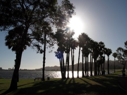 Ein paar Autobahnkreuze und Abfahrten später haben wir endlich den International Airport getroffen und sind da schnell das Auto los geworden. Wir waren auf dem Parkplatz für die Mietwagen und keiner hat sich um uns gekümmert. Also haben wir Kiste ausgeräumt, abgeschlossen und den Schlüssel im Flughafengebäude in eine dort rumstehende Schlüsselbox geworfen. Fertich. Der Flughafen Perth hat draußen vor dem Gebäude große Schließfachanlagen, wo man sein Gepäck lagern kann. Da haben wir uns zwei Abteile gemietet und waren auch unser Gepäck erst mal los. Dann haben wir den erstbesten Airportshuttle in die City genommen und sind nach Absprache mit dem Fahrer bei dem Fähranleger am unteren Ende der Barrack Street ausgestiegen. Da es jetzt mittlerweile aber doch recht spät war (die Fahrt hatte schlicht lange gedauert und das Wiederfinden das Flughafens nach dem Tanken hatte auch seinen Teil dazu beigetragen) waren alle Fähren zum Zoo schon weg, bzw. fuhren nicht mehr. Also auch in Perth haben wir es nicht mehr in den Zoo geschafft. Schade.