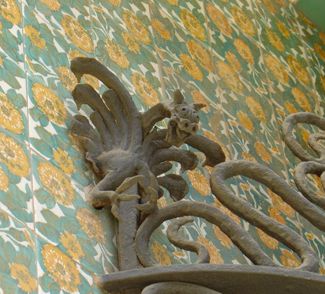 Von der Familia aus sind wir dann zum Stadtteil Gracia gefahren. Eine Art Künstlerviertel mit vielen engen, kleinen Gassen, vielen Plätzen und viel Leben. Dieses Viertel ist so "eng" mit so vielen Sträßchen durchzogen, das man auf der Karte garnix mehr erkenne kann. Wir sind auch eigentlich recht ziellos durchgelaufen, orientieren konnte man sich höchstens an den etwas größeren Hauptstraßen. An jeder Ecke, wo mehr als zwei Straßen zusammenkommen liegt ein kleiner Platz mit vielen Kaffee's und Bars. Überall was los, überall Leben. Eher zufällig sind wir auch an einem der ersten Gaudi-Häuser in Barcelona, der Casa Vicens, vorbeigekommen. Sieht ein wenig aus, wie ein kleine Burg aber fast schon Gaudi-typisch mit vielen Kacheln und schönen Verzierungen. Schön auch die Details an den Zäunen wie z.B. kleine fauchende Drachen.
