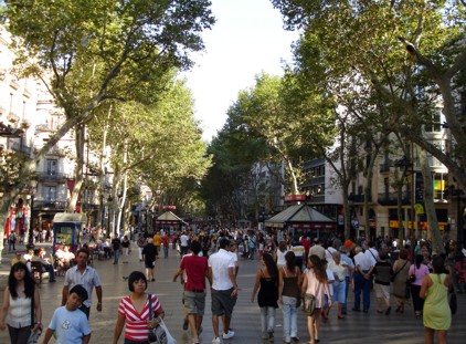 Die gute Germanwings hatte schon beim Abflug aus Köln eine gute Stunde Verspätung, so das die Ankunft in Barcelona erst so gegen halb 2 erfolgte. Vom Flughafen zur Bahnstation und dann mit dem Zug weiter in die Stadt war zwar recht zügig bewerkstelligt, gezogen hat es sich aber trotzdem. Das Hotel war recht nahe am Bahnhof, die oberen Etagen des Hochhauses waren sogar vom Bahnhofsvorplatz zu sehen, so das die Orientierung recht einfach war. Im Hotel war die Hölle los und das Checkin hat sich gezogen. Irgendwann zwischen 15 und 16 Uhr war ich endlich aufm Zimmer. Irgendwie war ich groggy und hab mich noch ein wenig aufs Ohr gelegt. Als ich dann wieder fit war, bin ich auf die Piste gegangen. Da ich mich in der Ecke ein wenig auskenne, bin ich zu Fuß los in Richtung Ramblas. Auf halbem Wege habe ich dann festgestellt, das ich meinen Fotoapparat vergessen hatte und bin wieder zurück. Den restlichen Weg hab ich dann per UBahn zurückgelegt und nach dem Zurück ins Hotel und der erneuten "Anfahrt" zu den Ramblas bin ich dort doch endlich so gegen 18 Uhr eingetrudelt.