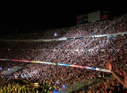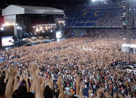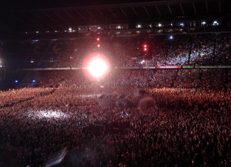 Nun, bei einem Bierchen ist es nicht geblieben und so bin ich länger sitzen geblieben, habe was gegessen und ein wenig gelesen und schwupps war es schon wieder 19 Uhr und so langsam Zeit sich in Richtung Springsteen aufzumachen. Das Konzert heute sollte "schon" um 21 Uhr anfangen ( gestern wars 22 Uhr ). Also bin ich in die UBahn und direkt zum Stadion gefahren. Wieder mit den ganzen Massen von Leuten zum Stadion gepilgert und mein Plätzchen gesucht. Heute war ich weiter unten und so ungefähr in Höhe Mittellinie. Anscheinend war es der internationale Block. Um mich herum habe ich nur Engländer, Franzosen und Holländer gehört. Das Konzert fing natürlich nicht um 21 Uhr an sondern viel später. Bruce war heute wirklich gut drauf und hat richtig seltene Sachen aus der Versenkung geholt. Der ganze Mittelteil des Konzertes war ein großes Sammelsurium an selten gespielten Stücken. Wirklich wunderbar. Die Stimmung war heute wieder besonders toll. Irgendwie wollte keiner das es vorbei ging. Am Ende nach unzähligen Zugaben und immer wieder erneute Verlängerung der Stücke war dann aber nach etwas mehr als drei Stunden wirklich Schluss. Auf der Bühne verabschiedeten sich die Band und sehr viele Angehörige der Bandmitglieder und auch die Kinder von Springsteen von den Spaniern und von ganz Europa. Das war das letzte Konzert der Europatour von Bruce Springsteen und der E-Street Band. Schade das es doch irgendwann zu Ende gehen musste.