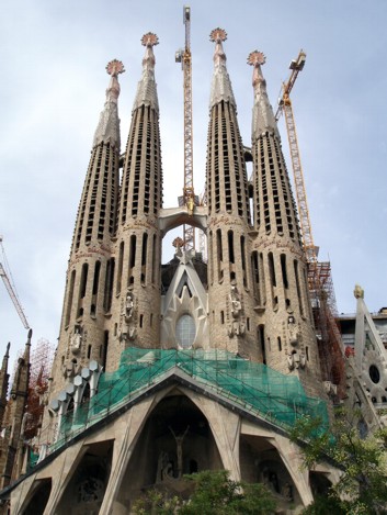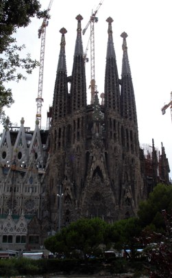 An der Bude auf dem Platz vorm Brunnen hab ich erst mal die Flüssigkeitsversorgung sichergestellt. Da in der Gegend ist noch ein kleiner See, auf dem ein paar Friedensaktivisten mit Greenpeace-Fahnen auf Ruderbooten ein großes Spektakel machten. Keine Ahnung welchen Hintergrund das hatte. Beim Pavillon am Brunnen hab ich erst mal die nächste Pause gemacht. Ich musste auch mal so langsam aus der Sonne. Nach ein bisschen Kühlung von außen vom örtlichen Wasserspender und Kühlung von innen mit ner großen Pulle Wasser gings mir schon ein bisschen besser. Nach ner ganzen Zeit hab ich mich dann wieder auf den Weg gemacht und hab den Park in Richtung des Triumpfbogens durchquert. Von hier aus habe ich mich erst mal in die UBahn begeben und bin von hier nach Verdaguer gefahren. Von dort aus muss man einfach der Straße "Mallorca" folgen und nach kurzer Zeit steht man vor der Sagrada Familia. Hatte ich zwar schon gesehen, ist aber immer einen Blick wert. So richtig viel Fortschritt in den Baumaßnahmen war nicht zu sehen. Seit dem letzten Male wurden die Preise für den Eintritt aber kräftig erhöht. Trotzdem standen die Leute bis draußen auf die Straße an um reinzukommen. Ich hab mir die Kathedrale noch ein wenig vom angrenzenden Park aus angesehen. Habe mich dort am See ein wenig in den Schatten gesetzt und habe den Blick auf dieses Gebilde einfach wirken lassen. Als alles genug gewirkt hatte bin ich kurz eine Seitenstraße weiter und habe mich dort niedergelassen um ein verdientes Bier zu mir zu nehmen und was zu futtern. Hier war ich letztes Mal auch schon gewesen und so wusste ich, welchen der vielen Lädchen mit Sitzgelegenheiten draußen in der Fußgängerzone ich mir suchen musste. Nette Cervezeria mit großen Humpen Krombacher und ner riesigen Karte mit Burger und belegten Broten warm und kalt in jeder Art und Weise. Die Fußgängerzone müsste die Avinguda Gaudi sein. Den Namen des Ladens hab ich aber nicht mehr im Kopf.