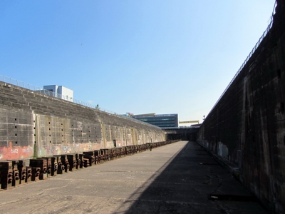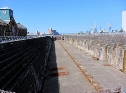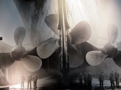 Am Pumphouse angekommen habe ich dann die Gelegenheit genutzt eine kleine Führung zu buchen mit einem Typen der sich selbst als ein „Titaniac“ bezeichnet. Ein wandelndes Lexikon mit Titanic Details und Titanic Anekdoten. Mit ihm ist man erst draußen ein wenig rum und dann später runter ins Dock marschiert. Immer sehr unterhaltsam erklärt und erzählt vom Titaniac. Man hat ihm auf jeden Fall zu jeder Zeit abgenommen, das er wusste was er da sagt. Und die Ausmaße dieses Docks von unten wenn man selbst dringestanden hat waren schon riesig. Der Typ hatte einen großen Bogen mit alten Bildern dabei, anhand derer man sich das riesige Schiff fast vor seinen Augen hier im Dock vorstellen konnte. Ich war hinterher recht froh das ich die letzte Tour des Tages noch mitgekriegt habe. Das hatte sich gelohnt. Nur leider musste ich den ganzen Weg zur Ausstellung wieder zurücklatschen. Dort war ich dann vollends groggy und musste erst mal Pause machen. Da hab ich dann gesehen das die auf einmal die Rolltreppen absperrten und ich bin mal schnell hingespurtet und gefragt ob jetzt zu sei. Kritisch wurde mein Ticket begutachtet und mit einem Hinweis, das ja nicht mehr viel Zeit wäre und ich mich ja nicht am Anfang zu sehr aufhalten solle sonst wäre am Ende keine Zeit mehr wurde ich noch nach oben gelassen. Die Ermahnung auf die Zeit zu achten habe ich dann auf dem weiteren Weg noch ein paar Mal bekommen. Dabei waren es noch 1,5 Stunden bis zum offiziellen Toresschluss.