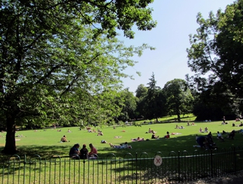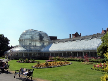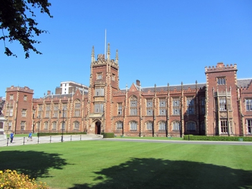 Wieder zurück im Bus hätten die nächsten Stationen eigentlich die Peace Wall, Shankhill Road und Falls Road sein sollen mit den bekannten „Murals“, öffentliche Wandbilder, die bestimmte Szenen darstellen. Nur leider war es in Belfast mal wieder zu gewalttätigen Ausschreitungen gekommen und der Bus ist am Stück durchgefahren ohne zu halten, bzw. durfte zum Beispiel die Falls Road garnicht befahren weil da Straßensperren der Polizei waren. Daher bin ich bei der Queens University raus und habe mir diese, bzw. das schöne alte Hauptgebäude an der Straße angeschaut und mich dann in den nahen Botanischen Garten verdrückt. Dort bin ich ein wenig rumgewandert, hab mir die alten Gewächshäuser/Palmenhäuser angeschaut und dann auf der großen Liegeweise mal ne Pause eingelegt.