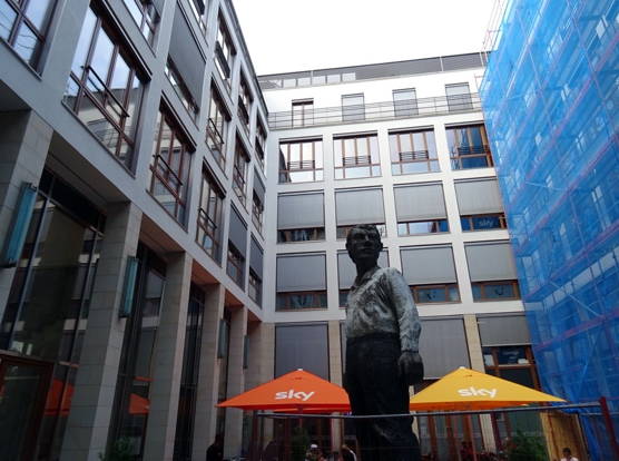 So um 17 Uhr sind wir dann langsam am wuchtigen Bau der US Botschaft und am Stelendenkmal vorbei richtig Potsdamer Platz gegangen. Im Sony Center haben wir uns dann noch genauer umgesehen. Und so langsam wurde es nun auch Zeit zum den Blue Men zu gehen. Wenn ich schon ma in Berlin bin, dann ist auch ein Besuch bei den blauen Männern Pflicht. Bei den Preisen muss da aber auch immer ne lange Pause zwischen zwei Besuchen sein. Für ne Show die täglich mit zwei Vorstellungen läuft noch über 90 Euro für ein Ticket zu verlangen, das kriegt auch nur Eventim hin. Aber gut und kurzweilig wars trotzdem. Und zum letzten Mal hatte man auch wieder ein oder zwei Kleinigkeiten neu eingebaut. Zumindest die mega Papierschlacht am Ende hat man zugunsten anderer Elemente abgeschafft. Jetzt ist aber trotzdem mal wieder ein oder zwei Jahre Blue Man Pause angesagt. Anschließend sind wir beim Alt-Bayern um die Ecke hängen geblieben und haben hier den Abend beendet. Abends um 10 warens übrigens immer noch Mitte 20 Grad in der Stadt. Puuh.