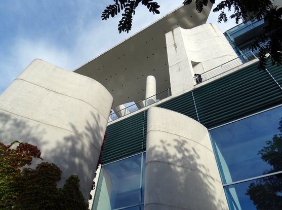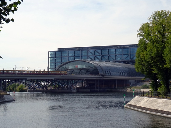 Und ja. Es ist schon ein toller Anblick. Ist wohl nebenbei auch das Skelett mit den meisten Originalteilen. Der Kopf ist separat ausgestellt. Der Kopf am Dinoskelett ist ein Nachbau. Das Original wäre zu schwer gewesen für eine hängende Installation. Außerdem wird der Kopf (auch hier : Der am vollständigsten erhaltene T-Rex Kopf der Welt) vom Museum intensiv untersucht und erforscht. Das geht am Boden besser als unter der Decke. Abseits in Seitenhallen sind auch noch die klassischen ausgestopften Tiere zu finden. Unter anderem auch der Eisbär Knut. Ist aber nicht weiter spektakulär. Ich hatte auch meine Dinos gesehen, also weiter im Programm. Wir wollten zum Regierungsviertel. Wenn man die Invalidenstraße weiter bis zum Fluss durchgeht kann man hier am Wasser entlang abbiegen und später über eine andere Brücke fast direkt aufs Kanzleramt zugehen. Die Regierung hatte heute Tag der offenen Tür. Heißt alle möglichen Ministerien konnten Besichtigt werden und es gab überall irgendwelches Rahmenprogramm. Unter anderem war auch das Kanzleramt geöffnet. Und da man nun jetzt auch einmal hier war und das Kanzleramt ja nicht alle Tage zu besuchen ist, haben wir uns einfach mal angestellt. Sympatisches Detail am Rande. Alle Wartenden in der Schlange in der prallen Sonne wurden kostenlos mit Wasser versorgt. Da hatte mal einer seinen Kopf angeschmissen und nachgedacht.
