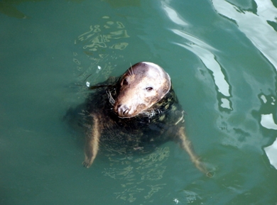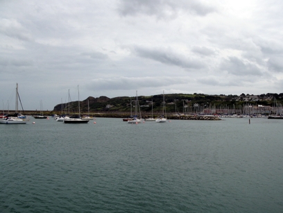 Über eine der wenigen fertigen Fußgängerbrücken sind wir dann auf die andere Seite und die drei Meter weiter zur Connelly Station gegangen. Hier haben wir uns dann in die Bahn gesetzt und sind in Richtung Howth gefahren. Howth ist nach der Gabelung der Strecke in Howth Junction die Endstation dieses Zweiges der Bahnlinie. Es liegt direkt an der Küste und ist eigentlich ein verschlafenes Fischerdorf. Allerdings hatten wir heute nen Tag erwischt, wo scheinbar die halbe Menschheit in Howth unterwegs war. Es war Markttag. Schien irgendwas bekanntes zu sein. Zu nem ganz normalen Wochenmarkt wären bestiommt nicht so viele Leute gekommen. Wir haben den Markt auch nicht weiter beachtet und sind erst mal im Hafen weiter zum Wasser gegangen. Lustigerweise war es hier oben an der Küste jetzt windstiller und wärmer als es das eben noch in der Stadt war. Im Hafenbecken um die ganzen Fischerboote herum paddelten sogar ein paar Robben herum, die ganz gierig darauf warteten das die ganzen Leute die hier unterwegs waren etwas zu futtern rüberwarfen. Und tatsächlich waren ein paar Leute dabei, die in einem der vielen Fischgeschäfte ne Hand voll Fische geholt haben und diese Robben damit gefüttert haben.