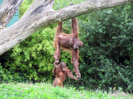Ein anderes Kulturphänomen (welches ich bisher nur aus Großbritannien kannte, bzw. es dort neben den USA meiner Meinung nach am besten zu studieren ist) war auch hier im Zoo allgegenwärtig. Falsche "Sorry" Bekundungen. Es gibt nichts schlimmeres in meinen Augen wie ein dahingeworfenes "Sorry" um sein Tun zu rechtfertigen. Oh, ich bin ihnen gerade auf den Fuß getreten weil ich mich an der Scheibe vorgedrängelt habe ? Sorry. Ach ich bin ihnen mit meinem Monsterkinderwagen reingefahren, weil hier überhaupt kein Platz für so ein Ungetüm ist ich aber trotzdem mit dem Ding bis ganz vorne hinfahren will und mir es eigentlich egal ist wieviele Leute da stehen ? Sorry. Arrrrrrrgh. Naja. Aber eigentlich war ich ja wegen den Tieren hier. Wie gesagt, nachdem ich herausgefunden hatte das das Zoo Layout doch einem höherem Plan folgte und ich den Rundweg beschreiten konnte habe ich die einzelnen Stationen abgeklappert. Ich habe auch wirklich sehr viele Tiere sehen können. Einzig die Flusspferde (da war zwar ein riesiger Happy Hippo Tümpel wie auch viele Leute erwartungsfroh hinstarrten, in dem aber keine Hippos waren, oder die können 30 Minuten die Luft anhalten) und die Elefanten haben sich mutwillig vor mir versteckt. Sehr gut gefallen hat mir das Haus mit den Gorillas, der Bereich mit den Orang Utans (die ziemlich ungestüm da in der Gegend rumtollten) und der ganze Bereich "Afrikanische Savanne" (oder war es Steppe?). Das Afrikanische Savanne - Gehege war ein großes Areal wo verschiedene Tiere, die denke ich in der freien Wildbahn auch zusammen da rumlaufen, sich den Platz gemeinsam teilten. Da gab es Zebras, Giraffen, Strauße, Antilopen und noch drei Nashörner die sich den ganzen Bereich teilten. Hier konnte man sich einfach auf erhöhter Position mal in Ruhe hinstellen und einfach beobachten. Das hat mir gut gefallen. Alles in Allem war ich so ungefähr zwei Stunden im Zoo. Die Zeit war nicht langweilig und man hätte sich durchaus auch länger aufhalten können. Aber gegen Ende war mir zuviel Betrieb und ich hab alles ein wenig schneller abmarschiert um da rauszukommen.
