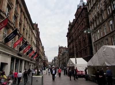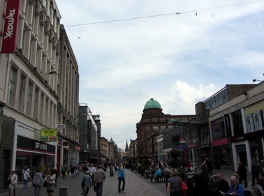 Hier vom St. Enoch Square kann man direkt geradeaus in die Buchanan Street gehen. Die ist Fußgängerzone und hier ist man auch mitten im Shoppingtaumel. Links und rechts werden die Einkaufszentren oder neudeutsch Malls immer riesiger je weiter man hochkommt. Ich bin gemütlich gebummelt und hab mal hier und da reingeschaut. Nen vernünftigen Kiltmaker habe ich nicht gefunden, die anderen Geschäfte wie Timberland oder Nike oder oder oder waren preislich nicht unbedingt so attraktiv, das es mir den Portemonnaie geleert hätte.