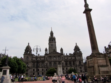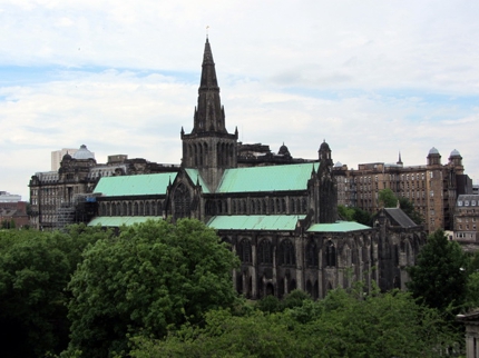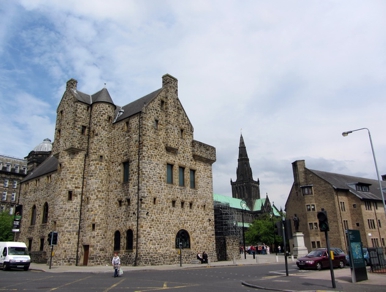 Weiter ging der Weg durch die Straßen von hier aus gesehen quasi an der anderen Seite der großen Galerie wieder runter und praktischerweise bin ich auch fast direkt auf den George Square mit dem großen feudalen Rathaus draufgelaufen. Nach ausgiebigen schauen von Gebäude und Denkmal in der Mitte des Platzes habe ich mal eine kleine Rast eingelegt und auf einer Bank am Rand einfach mal ne Zeit lang Leute beobachtet. Immer wieder herrlich. Von hier habe ich mich zwischen Ingram Street und Trongate ein wenig treiben lassen und bin so immer weiter Richtung Westen gekommen. Schließlich stand ich an der High Street, der ich jetzt nur noch nach oben bzw. nach Norden folgen musste, um zur Glasgow Cathedral zu kommen. Dachte ich zumindest. Das nur mal folgen war dann doch ne größere Latscherei als geplant und das meist auch noch bergauf. Oben auf dem Hüpfel angekommen bin ich erst mal links in die Barony Hall gestiefelt. War jetzt nicht allzu bemerkenswert, bis auf die Tatsache das das Gebäude vollständig aus Sandstein erbaut ist und dafür noch in erstaunlich sehr gutem Schuss ist. Über die Straße und über den Platz kommt man am St. Mungo Museum vorbei (schönes Ritterburg-ähnliches Gebäude) und direkt auf die Glasgow Cathedral bzw. St. Mungo Cathedral zu. St. Mungo …. Da war doch bei Harry Potter irgendwas, was auch St. Mungo hieß, oder ?
