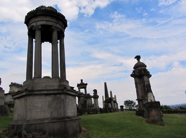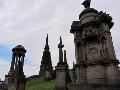Nach dem Aufstieg war noch eine kleine Rast fällig. In der Kirche wars schön kühl, da bot sich das an. Nächste Station danach war die Necropolis. Der uralte Monumentalfriedhof von Glasgow. Der liegt von der Kirche aus gesehen wieder auf einem Hügel oberhalb. Von da oben hat man auch eine schöne Übersicht über die ganze Stadt. Diese Necropolis ist auf jeden Fall einen Blick wert. Sieht teilweise schön verfallen und verwittert aus. Auf jeden Fall wird aber auch klar, das hier nicht die ärmsten der Stadt hingelegt wurden.