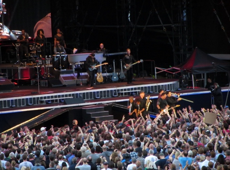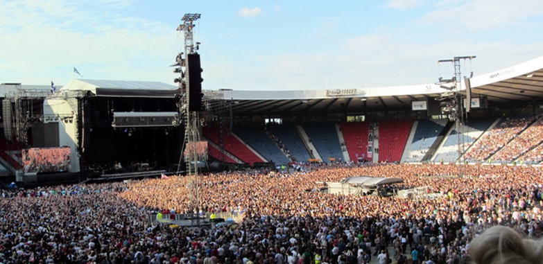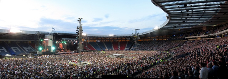 Schönes Stadion der Hampden Park, seines Zeichens Nationalstadion von Schottland. Wenn mich nicht alles täuscht dann ist das auch ein Fifa Sterne Stadion. Offensichtlich hatte man nicht alle Karten verkauft, die Bühne stand quer, also auf der Längsseite im Stadion. Dieses Setup war nicht so schlecht. Auf der Haupttribüne war man recht nahe dran, näher als wenn die Bühne hinten in der Kurve gestanden hätte. Das Konzert war wie gewohnt sehr toll und vor allen heute wieder lang. 3 Stunden 45 Minuten. Puh.