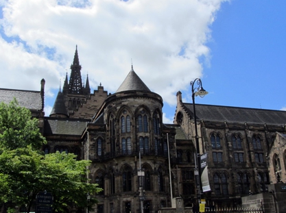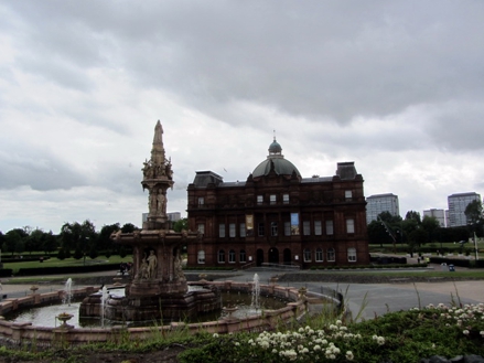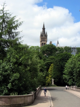 Das UBahn System hier ist nicht allzu kompliziert. Die Bahn fährt als Ring. Das heißt, wenn man lang genug sitzen bleibt, kommt man irgendwann wieder da an, wo man angefangen hat. Es gibt nen inneren und nen äußeren Ring, was die beiden Richtungen darstellt. Das wars auch schon. Bedeutete aber auch, man musste sich keine Gedanken um Umsteigen oder Verbindungen etc. machen. Das gibt’s garnicht hier. Auch nicht schlecht. Ab der Station Kelvinbride gings ein wenig durch den Park (Kelvingrove Park) bis zur großen Fountain. Kann man eigentlich fast nicht verfehlen. Der Spaziergang bei bestem Wetter war sehr angenehm. Zurück bin ich dann abgebogen zur Uni hin und habe mir das Gelände samt imposantem Hauptgebäude mal genauer angeschaut. Sieht wirklich klasse aus. Der große Turm mit den Erkern und Schnörkeln ragt über alles und den konnte man auch schon aus dem Park sehr gut sehen. Sieht ein wenig aus wie aus nem Harry Potter Film ausgeliehen.