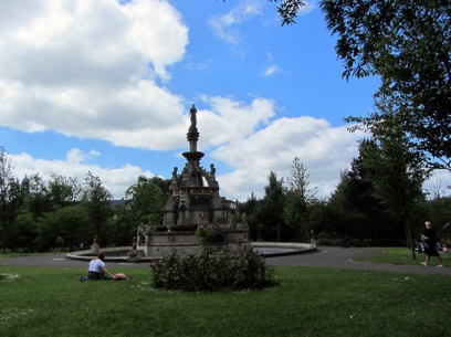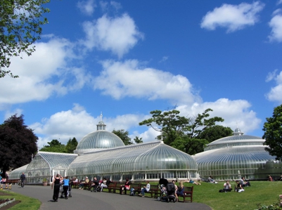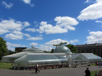 Die Byres Road nach oben stößt man irgendwann auf die kreuzende Great Western Road. Hier direkt geradeaus drüber gelangt man schnurstracks in den botanischen Garten mit den sehr schön gelegenen Gewächshäusern und Palmenhäusern. Es ist umsonst, man kann die Palmenhäuser nach Belieben betreten. Ich bin mal durch alles ein wenig durchgewandert. Bis darauf das unter den Glasdächern 100% Luftfeuchtigkeit war und einem nach zwei Metern die Klamotten am Körper geklebt haben war es sehr schön da durch die Vegetation zu stapfen. Zum Abschluss habe ich draußen im immer noch allerbesten Sonnenscheinwetter noch ne längere Rast gemacht und Leute und Vögel beobachtet.