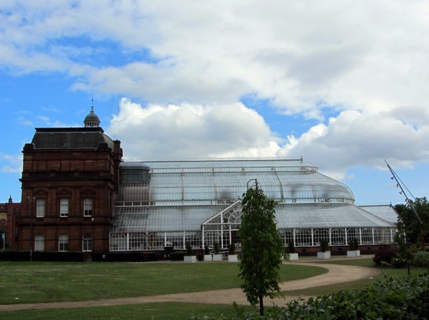 Von meinem Standort musste ich jetzt nur der Straße folgen, einmal um „BBC Scotland“ rumlaufen und ich stand vor dem Science Center ….. und war ziemlich alleine hier. Das kommt davon, wenn man sowas an den Ar …. Ähm äußersten Zipfel der Welt baut. Hier war ja mal gerade garnix los. Ein bisschen hatte ich das Gefühl, das jetzt nur noch wie im Western so ein rollender Busch im Bild gefehlt hätte um das Verlassen sein der Gegend zu untermalen. Ich bin mal reingegangen. Und direkt auf die Kasse zugelaufen. Ich hätte jetzt sofort Eintritt zahlen müssen. Da ich nun nicht wirklich sicher war, was mich da erwarten sollte, hab ich das erst mal gelassen, noch kurz beim IMAX Kino geschaut (da standen auch nur 3 Leute vor der Türe für die nächste Vorstellung) und bin nach nem Servicestopp in der Keramikabteilung wieder gegangen. Draußen gabs ne Bushaltestelle. Leider hält hier nur der HoppOn HoppOfff Sightseeingbus. Für ne richtige Haltestelle muss man erst wieder zurück bis zum Pacific Drive und dort noch ein paar Meter gehen. Als der Bus endlich kam, war ich doch froh, hier aus der Gegend wieder wegzukommen. Mit diesem Bus ging es erst mal zurück zum Bahnhof. Ein wenig gings dann nochmal die Fußgängerzone weiter runter und dann in den nächsten Bus. Ich wollte zum „Glasgow Green“ mit dem „Peoples Palace“. Mit dem Bus bin ich auch fast richtig gefahren (bin nur eine Station zu weit) und nach kurzem Fußmarsch auf das Glasgow Green zugekommen. OK. Dafür das der Reiseführer jetzt so ein Aufhebens drum gemacht hat, war das hier irgendwie einfach nur ein großer Fleck Wiese. Der sog. Peoples Palace entpuppte sich dann als ein großes Palmenhaus, ähnlich wie die aus dem Botanischen Garten. Schön isses aber, von drinnen wie von draußen. In diesem Palace ist neben dem Teil mit dem Palmenhaus noch ein Museum eingebaut. Da hatte ich für den Abend aber keine Lust mehr zu. Stattdessen habe ich mich ein wenig abseits auf eine Bank gesetzt und bis um 17 Uhr als sie mich rausgeschmissen haben eine kleine Rast "im Grünen" gemacht.