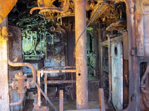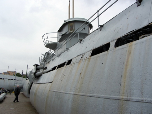 Im weiteren Verlauf geht es dann weiter zur Sonne, schwarzen Löchern, Experimente mit Lichtbrechung und Teleskopen. Leider war da aber nicht mehr sehr viel Futter drin und ein paar der Sachen die zum Ausprobieren animieren sollten waren schlicht vollkommen abgenudelt. Durch ne kleine „Spielzone“ durch (Sachen mit Magneten, Versuche mit Gravitation und sowas) stand man dann im Gift Shop und war durch. Mich hats ungefährt ca. 45 Minuten aufgehalten und ich war pünktlich wieder an der Fähre für den nächsten Stopp. Fazit : Also zum Glück habe ich kein Vollpreis-Ticket gekauft. Da hätte ich mich geärgert. Später habe ich dann bemerkt, das ich garkeine Fotos gemacht habe um das zu dokumentieren. Der nächste Stopp in Birkenhead bei der U-Boat Story war da schon interessanter. In den letzten Kriegstagen wurde U534 versenkt. Dieses Uboot hat man 50 Jahre später gehoben und jetzt ist es hier in Birkenhead ausgestellt. Das ganze Teil wurde in drei Abteile zersägt und so liegt es da am Ufer. Durch die Querschnitte bieten sich recht ungewöhnliche Einblicke und Durchblicke durch die (rostigen) Stahlrümpfe. Alles was man im Boot geborgen hat wird in einer kleinen Ausstellung nebenan gezeigt. Von allemöglichen Knöpfen mit deutscher Beschriftung, alte Rationen in Dose, Schildern (unter anderem Bedienungsanleitung fürs Klosett), Uniformen und alles Mögliche Zeug wurden in dem Boot noch zwei komplette Enigma Maschinen mit Schlüsseltafeln und eine handvoll hochmodernster Torpedos gefunden. Warum das Boot für Wettererkundungsfahrten Enigmas und Hightech-Torpedos an Bord hatte weiß bis heute niemand zu sagen.