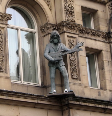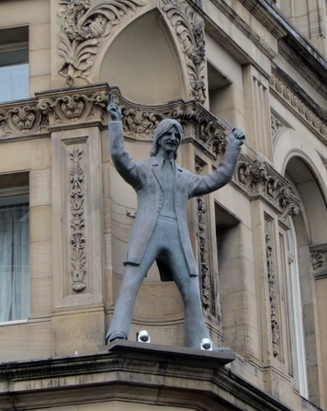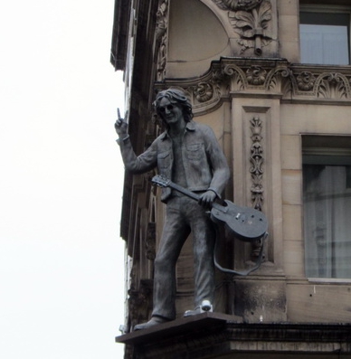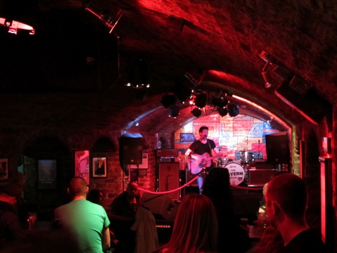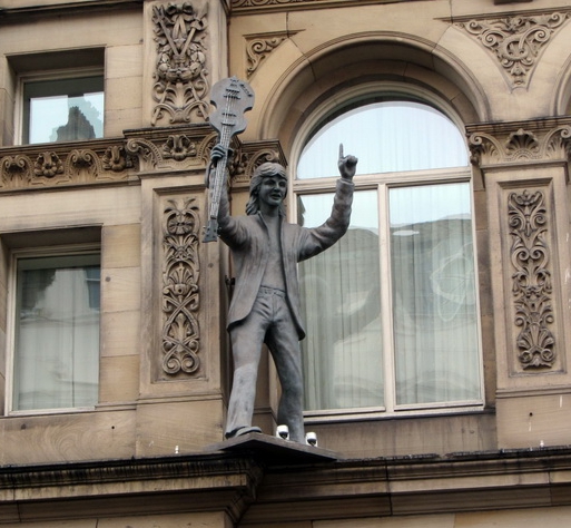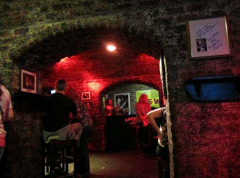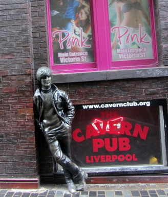 Die Ausstellung fand ich recht interessant. Das Spiel mit der Funktionsweise der Enigma war allerdings kaputt. Der Touchscreen war so zerkratzt das er nicht mehr richtig funktionierte. Zurück aufm Boot ist es nur ein kleiner Hüpfer zurück auf die andere Seite (natürlich wieder mit Ferry Cross The Mersey Dudel im Ohr). Also im Großen und Ganzen ist die Fahrt mit der Fähre als reiner Selbstzweck um mal mitgefahren zu sein jetzt nicht allzu spannend. Man sieht auch nicht unbedingt super interessante Sachen auf der (letztendlich kurzen) Fahrt. Einzig der schöne Blick vom Wasser mit etwas Abstand auf die Drei Grazien lohnte sich. Zurück bin ich nun die Brunswick Street hoch und oben beim Rathaus dann die Cook Street runter. Nach nur ein paar Metern steht man dann mitten im Cavern Quarter. Leider wars jetzt aber ganz penetrant am Fieseln. Ich war froh das ich direkt beim Carvern Club rauskam. Erst mal noch die Straße ein wenig angeschaut (Mathew Street) und noch die paar Denkmäler dokumentiert und dann nix wie runter in den Keller. 1973 hat man den original Cavern Club geschlossen und abgerissen, weil man eine Bahnlinie bauen wollte. Die ist aber niemals gebaut worden, stattdessen ist an die Stelle eine Reihe Geschäftshäuser gesetzt worden. Allerdings hat man wohl die meisten alten Kellerziegel und Einrichtung retten können und hat dann wieder einen neuen Cavern Club ca. 50 Meter weiter die Straße hoch gebaut. Dieses Detail habe ich aber einfach mal ausgeblendet und habe mich ganz der Illusion hingegeben da unten im Keller zu stehen wo die Beatles gespielt haben und wo jede Menge legendärer Beatles-Auftritt stattgefunden haben. Natürlich war viel los und natürlich waren die meisten Leute hier Touristen aus aller Herren Länder. Aber trotzdem konnte man beim Bierchen mal sehen, was zeitlose Musik ausmacht. Es lief Musik aus der Konserve. Sobald dann ein Beatles Lied kam, hat durch alle Schichten und durch alle Altersgruppen plötzlich jeder mitgesungen. Das war faszinierend anzusehen.