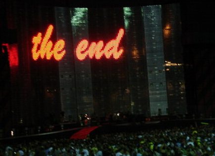 Anfang 20.20 Uhr, Ende wegen der strengen Lärmschutzgesetzte Punkt 22.30 Uhr. Konzert supergeil. Band sehr gut gelaunt und Bono ebenfalls sehr gut drauf. Also ein gelungener Abend.