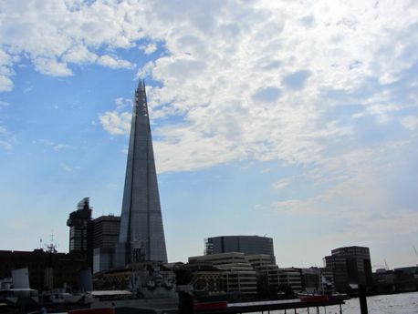 Nach den obligatorischen Bildern von den Raben und von der still und steif stehenden Wache mit seiner Fellmütze bin ich dann als einer der letzten noch zu den Kronjuwelen vorgelassen worden. Positiv auch hier : kein Betrieb. Ich habe mich hier dann so lange aufgehalten und Diamanten begutachtet, bis man uns dann rausgeschmissen hat. Ich glaube als ich später dann draußen war, wurde wirklich hinter mir die Türe zugeworfen. Ach das Ticket für den Tower kostet übrigens mittlerweile 18,50 Pfund ! Für den letzten geplanten Tagespunkt, den neuen Skyscraper „The Shard“ musste ich wieder auf die andere Seite. Zähneknirschend habe ich wieder die Fähre genommen obwohl ich wusste das ich wieder 4 Pfund irgendwas für von einer zur anderen Seite bezahlen musste. Aber irgendwie wäre es mit der UBahn vom Tower aus einfach mal auf die andere Seite zu London Bridge ne richtig umständlich Aktion gewesen inkl. mind. 2 mal umsteigen.