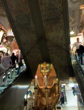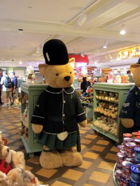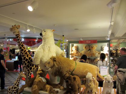 Jetzt gegen Mittag gings dann von Monument nach Knightsbridge. Ich hatte noch einen Touristenpunkt auf der Agenda. Ich wollte nochmal einen Zug durch Harrod's machen. Da bin ich ganz am Anfang bei meinem ersten oder zweiten London Trip mal gewesen, danach nie mehr wieder. Zuerst ging es in die Food Abteilung. Aber da war mir dann nur zum schauen eindeutig zuviel Betrieb. Hier hat man sich nur durch Massen geschoben ohne irgendwo mal in Ruhe was kucken zu können. Die Erkundung des restlichen Ladens ging dann im ägyptischen Treppenhaus los. Hier wird die Fahrstuhlmusik noch handgemacht. Eine Live-Opernsängerin auf einem kleinen Balkon sorgt hier für die musikalische Untermalung. Unten im 1UG kann man den kitschigen Di und Dodi Altar begutachten. Die restlichen Abteilungen bin ich dann sehr selektiv angegangen. In der Möbelabteilung sollte man sich mal die Preisschilder anschauen. Wenn man mal für relativ hässliche Dinge 4 oder gar 5 stellige Preise sehen will, ist man hier richtig. Sehr viel mit dem Kopf geschüttelt habe ich dann in der Tierabteilung mit den Delikatessen und Kuchen für den Hund und den Kleidern und Regenmänteln für Hund und Katz. Teilweise war es schon sehr peinlich was dort für unglaublich viel Geld für den Vierbeiner verkauft wurde. Das Gemüt aufgeheitert hat dann wieder die Spielzeugabteilung. So einen lebensgroßen Plüscheisbär, Plüschzebra oder den zwei Meter großen Harrods Teddybär würd ich mir ja auch in die Wohnung stellen, wenn nur die 4 bis 5 stelligen Preisschilder nicht wären.