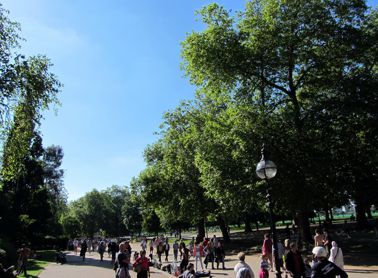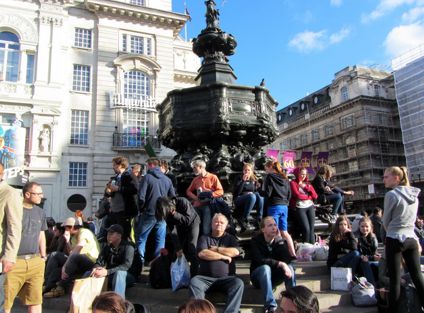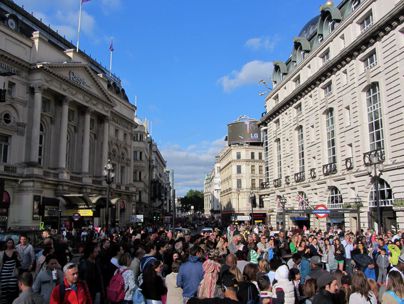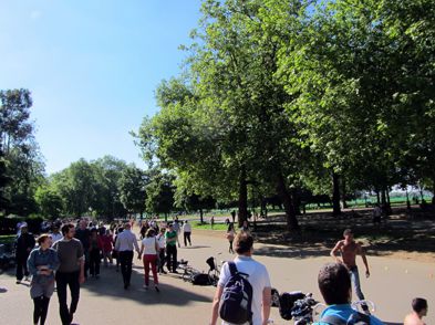 Alles in allem habe ich mich doch recht lange hier aufgehalten. Hätte jetzt garnicht gedacht das beim Kram gucken den man sich nicht leisten kann so schnell die Zeit vergeht. Von Harrods aus ist es nicht wirklich weit bis zum Hyde Park und mit ein paar (wirklich köstlichen) Mandelcroissants von Harrods und nem Kaffee von Starbucks war ich dann noch länger im Park und hab Leute beobachtet. Und da gabs ne riesige Auswahl. Denn jetzt und hier am Samstag (frühen) Abend war gefühlt die halbe Menschheit oder zumindest ganz London hier im Hyde Park. Von Hyde Park Corner hab ich mich noch kurz zum Piccadilly Circus begeben. Es war zwar noch nicht dunkel, die Leuchtreklamen kam aber trotzdem gut zur Geltung. So hab ich mich noch ein wenig beim Brunnen hingesetzt und bunte Reklameschilder und die vielen vielen Leute begutachtet.