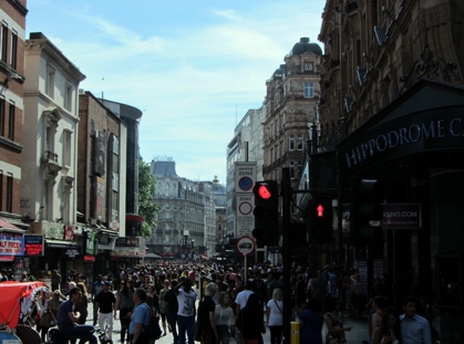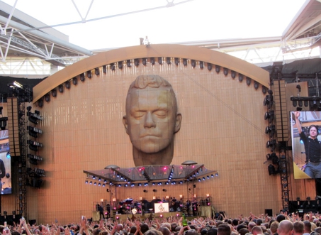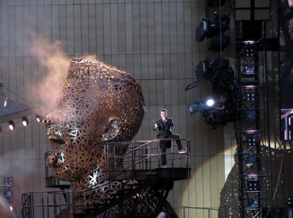 Ich war am Nachmittag so 15 Uhr im Hotel. Ne kleine Ruhepause später habe ich mich dann auf Tour begeben. Eigentlich war Gloucester Road garnicht schlecht. Hier sind Piccadilly Line und Circle und District Line. Mit der Piccadilly gings zum gleichnamigen Zirkus und dann oberirdisch weiter ein wenig rund um Leicester Square und Covent Garden. Dort in der Gegend gabs dann noch ein schönes Steakchen und dann ging es auch schon weiter zum Stadion. Green Park, Jubilee Line und dann sitzen bleiben bis Wembley Park. Ich hatte eine Karte für den Innenraum und irgendwie war ich heute zwar garnicht sooo spät, aber doch so um die Zeit wo die Vorgruppe anfing (Olli Mörs) und im Innenraum war schon recht viel Betrieb. Auf den Unterrängen war kein vernünftiger Platz mehr zu finden und so habe ich mich unten drin angestellt. War ganz OK. Konzert war sehr gut. Eigentlich fangen alle Konzerte von Herrn Williams ja immer gleich an. Er seilt sich von irgendwo oben ab oder lässt sich hereinschweben und bringt dann „Let me entertain you“ als Opener. So auch heute und trotzdem wars sehr gut.