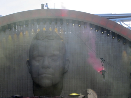 Nun. Später nach dem obligatorischen „Angels“ als letzte Zugabe ging es dann zügig aus dem Stadion raus. Viele andere waren aber schneller und so wurde die Meute erst einmal zweimal von den Ordnern aufgehalten, bis die Bahnstation sich jeweils wieder geleert hatte. Dabei machte einer der Ordnungskräfte noch richtig Stimmung in dem er (weiß nicht von seinem Handy aus oder so) noch ein bisschen Robbie Musik über sein Megafon erklingen lies. War irgendwie ne ziemlich ausgelassene Stimmung.