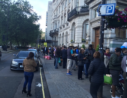 Am Bahnhof Liverpool Street angekommen begebe ich mich zur UBahn. Dort sind viele Leutchen mit Gummiwischern gerade dabei, das Wasser was von überall herkommt wegzuschieben. Offenbar hatte es in London gestern an meinem Pausentag und die Nacht durch geschüttet ohne Ende, so das jetzt alles abgesoffen war. Natürlich konnte auch die UBahn nicht wie normal fahren. Der Zug hat alle drei Meter im Tunnel ne Pause eingelegt. Ende vom Lied. Um Punkt 19 Uhr 30 als das Theater losging bin ich gerade beim Hotel an der Rezeption angekommen zum Checkin. 45 Pfund für "The Play That Goes Wrong" sind dahin. Schade. Das "Best Western The Cromwell" ist direkt an der Ubahn Gloucester Road und zu Fuß 5 Minuten zum Naturkundemuseum. Ich habe im Zimmer kurz verschnauft. Als der Blutdruck wieder in normalen Regionen war habe ich den Entschluss gefasst ins Hard Rock Cafe zu gehen. Zum einen hatte ich noch einen "Priority Seating Coupon" und zum anderen noch einen 15 Dollar Gutschein. Die wollten unters Volk gebracht werden. Als ich dann auf die Zielgerade zum HRC eingebogen bin habe ich meinen Augen nicht getraut. Da standen wirklich Leute 20 Meter den Bürgersteig hoch an um ins HRC reinzukommen. Bitte ??? Ich habe erst einmal fassungslos die Menschenkette fotografiert. Ich habe mir schon gedacht das die wohl irgendwas besonderes haben heute Abend, aber ich habe es trotzdem mal mit meinem "Priority Seating Coupon" an der Schlange vorbei probiert. Nein, dieser Coupon gilt zwa eigentlich fast immer, aber leider heuten gilt er nicht. Sorry. Grrr. Ich habe dann mal kurz google angeschmissen und herausgefunden, das das Hard Rock Cafe gerade heute Abend am 14 Juni seinen 45. Geburtstag feiert. Zu dieser Feier gibt es die original Speisekarte von 1971 und .... tadaaaa ..... deshalb stehen die ganzen Leute nämlich hier ..... und auch die original Preise von 1971 ! Ein Burger für 70 Pence oder 1 Pfund. Naja. Ich habe mir dann zu mir gesagt, ihr könnt mich alle mal am A ...... abend besuchen .... ich geh jetzt zum Leicester Square und geh zum Angus. Die haben hoffentlich keinen Geburtstag. Ich bin also vom HRC hoch zum Picadilly Circus und weiter zum Leicester Square. Beim Angus war genügend Platz um mich, jetzt schon 21 Uhr, zu bewirten. Wie sage ich immer so schön. Ein kleines 12oz Steak später war die Welt schon wieder in Ordnung. Ein Stück die Straße hoch gabs beim Brewmaster noch ein Ciderchen und dann war der Abend beendet. Nach der stressigen Anfahrt war ich echt platt. Gute Nacht.