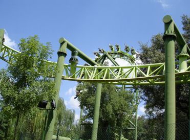 Sooooo. Der letzte U2 Tag für diese Europatournee. Schade. Schon alles vorbei. Aber immer noch ein halber Tag Vorfreude. Und dieser halbe Tag musste auch noch mit Programm gefüllt werden. Im großen Park Casa de Campo gibt es einen Vergnügungspark, den Parque des Atractiones. Dieser wurde in der Stadt kräftig beworben. Also einfach mal hin und geschaut. Mit der Bahn ging es auch schnell dorthin. Ach so, heute war das Wetter übrigens auch wieder besser. Bestes Sommerweiter mit guten 30 Grad. Beim Eintritt in den Park konnte man sich entscheiden für eine Art Tageskarte mit unbegrenzten Fahrten in allen Attraktionen (teuer) oder für eine "Nur Zutrittskarte" in der zwei Fahrten inklusive waren (billig). Eigentlich bin ich sicher der guten Frau an der Kasse genau deutlich gemacht zuhaben, das wir die billige Variante wollten. Als ich nachher auf den Kreditkartenbeleg kuckte, waren doch zwei sauteure Tageskarten drauf. grrrrr Naja. Der Park war ne Mischung aus Kinderland und normalem Freizeitpark mit einer Hand voll Fahrgeschäften. Der Freefalltower und der Inverted-Coaster waren recht anständig. Die neue Attraktion "Tarantula 3D" firmiert hier bei uns unter "Wilde Maus" und ist auch nicht mehr taufrisch. Naja, man konnte sich dort gut aufhalten und ein paar schöne Fahrten machen. Das Geld ist es aber nicht unbedingt wert. Als wir uns satt amüsiert hatten sind wir zurück in die Stadt und direkt zum Park Retiro gefahren.