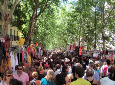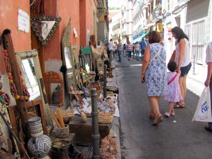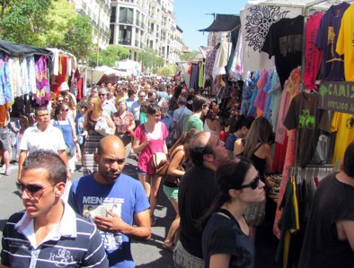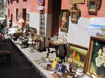 Heute ging es erst mal recht spät los. In meinem Reiseführer stand das man am Sonntag auf jeden Fall auf den Rastro Markt gehen solle, der in der Gegend um die Metrostation La Latina an jedem Sonntag stattfindet. Mit der UBahn ging es daher eben nach La Latina. Aus der Station heraus stand man erst mal vor ner großen Baustelle. Da wurde an irgendwas, was ich auch als Markthalle oder so etwas identifiziert hätte schwer rumgebastelt. Ich bin dann einfach mal den ganzen Menschenmassen gefolgt und stand auch schon um die nächste Ecke bei den ersten Marktständen.