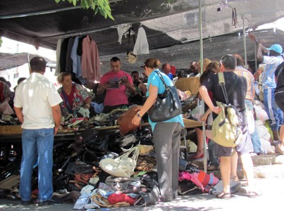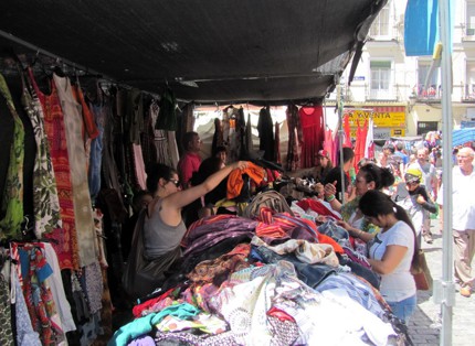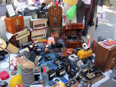 Der Markt ist mehr oder weniger aufgeteilt in mehrere „Themenbereiche“. Da wo ich herkam, kam man zuerst an Unmengen von Markständen mit Klamotten, schrecklich hässlichen TShirts und sonstigem Klimbim wie Schuhe, Handtaschen vorbei. Wandert man jetzt die Straßen entlang, dann wird aus dem Klamottenmarkt erst mal ein Krimskrams und Klimbim Markt. Von der Bratpfanne bis zur Mehrfachsteckdose war hier alles zu bekommen. Danach kommt der Trödel und Second Hand Bereich. Hier waren schon einige Kuriositäten. Teilweise sah es so aus, als ob jemand einfach seinen Hausrat auf den Bürgersteig gestellt hat und nun hoffte das irgendein Depp davon was kaufen würde. Eines war überall gleich. Überall, egal welche Straße, war ein unglaublicher Betrieb. Wirklich sehr viele Leute unterwegs. Auf dem Weg durch die Straßen hoch und runter ist aber die Zeit recht schnell rumgegangen. Als mir irgendwann endgültig zu warm war (bestes Wetter hier. Gegen Mittag schon 30 Grad) hab ich mich wieder zur UBahn abgesetzt.