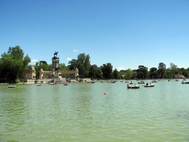 Ich bin in den Park rein um mal bei meinen gewohnten Stellen ein Bierchen und ein Baguette einzunehmen. Auf dem See war sehr viel los. Die Spanier scheinen es zu lieben mit dem Paddelböötchen im Park auf dem See rumzudümpeln. Was muss ich da sehen. Die haben meine Bude am Ende vom See zugemacht. Das ist ja doof. Eigentlich war das schon Tradition das ich mich da mal niedergelassen habe und ein Bier und ein Salamibaguette eingeworfen habe. Allgemein waren von den ganzen Büdchen scheinbar noch ein paar mehr verschwunden. Scheinbar hat man im Park mal ein wenig aufgeräumt oder die waren mittlerweile pleite weil keiner mehr gekommen is, kann ja auch sein. Also hab ich ohne Verpflegung ein wenig gerastet. Ist bei dem schönen Sommerwetter schon reichlich schön hier. Ein wenig habe ich noch das Spielchen mit der Polizei und den farbigen Mitbürgern die Sonnenbrillen und Handtaschen verkaufen beobachtet. Spielregeln sind : Irgendwo breitet ein farbiger Mitbürger eine Decke mit Sonnebrillen, Rolexuhren und Handtaschen für 5 Euro aus. Ein anderer Mensch steht Wache. Die Polizei fährt Streife. Nähert sich die Polizei ertönt ein kurzer Ruf und schwupps hat der für den Verkauf zuständige Mensch in Windeseile all seinen Kram zusammengepackt und nimmt die Beine in die Hand. Um sich dann am anderen Ende vom Park wieder neu aufzubauen. Und wenn da dann die Polizei vorbeikommt ...... .Das Spielchen geht so den ganzen Tag.