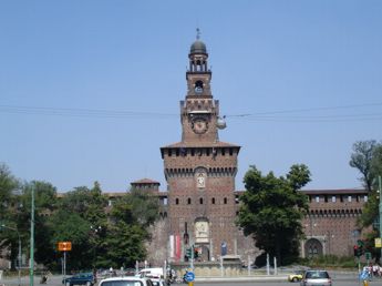 Anscheinend sind Italiener morgens recht früh fit. Zwischen 6 oder 6 Uhr 30 war im Hotel die Ruhe vorbei. Unglaublich. Ich habs zwar noch im Bett ausgehalten. Als aber ab 8 Uhr die Kirche nebenan anfing alle halbe Stunde zu bimmeln, da hab ichs auch aufgegeben. Ich hab noch ein wenig eingekauft ( was man so braucht. Wasser, Bier, Kekse, Süßigkeiten ) und bin dann wieder zum Dom marschiert. Ich musste ja eh dorthin, da ich die Tickets abholen musste. Habe am Dom dann wieder eine Pause eingelegt und das Treiben dort beobachtet und um 11 Uhr pünktlich beim Ticketladen auf der Matte gestanden. Nach erneuten Zettelaustauschen gabs auch tatsächlich ne Karte für mich. Also das Programm für den heutigen Abend stand fest. Vom Dom aus habe ich noch paar Plätze abgeklappert und mich dann zum Castello Sforzesco begeben. Das Castello ist eine Art Burg mitten in der Stadt, in der früher die Herrscherfamilien gewohnt haben. Übrigens würde dieses Castello nicht als Verteidigung gegen äußere Feinde errichtet sondern als Verteidigung gegen das eigene Volk. Soviel zum Führungsstil damals.