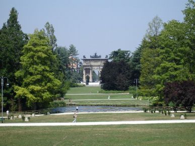 Sieht schon recht nett aus, wenn man um die Ecke einer Einkaufsstraße biegt und vor einem stehen riesige Burgmauern mit Türmen und allem drum and dran. Dieses Castello hat auch ein Museum. Leider wollten die aber Geld sehen und das habe ich nicht eingesehen. So sehr hat es mich auch nicht interessiert. Praktischerweise kann man vom Castello aus direkt gerade durch zum Parco Sempione gehen. Laut Reiseführer "einer der schönsten Parks in Mailand". OK, soooo super toll wars ja nicht, aber als schöne grüne Lunge in all dem Trubel allemal zu gebrauchen. Im Park habe ich noch ein paar Denkmäler abgeklappert und anschließend das riesige Tor "Arco della Pace" begutachtet. Das sah schon ziemlich fett aus. Oben waren irgendwelche Geländer angebracht, als ob man da drauf könnte. Leider wurde hier aber auch gebaut und restauriert, so das ich da nicht überprüfen konnte. Die restliche zeit bis zum Nachmittag habe ich noch im Park verbracht. Ausgiebig Pause gemacht und im Schatten gedöst. Dem Treiben zugeschaut und einfach die Zeit vorübergehen lassen.
