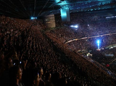 Da mein Mahl gestern aus einem Burgerking-Menu bestand, wollte ich heute nochmal was Vernünftiges essen. Ich habe mich wieder in die Straße mit den vielen Lokalen von vorgestern begeben und habe dort nochmal eine Pizza eingeführt. In dieser Lokalität war es sogar einigermaßen unkompliziert. Bierra, Pizza Salami Pikante, per favore, grazie ! Nach einer guten Grundsättigung bin ich zurück zum Hotel um mein morgens gekauftes Konzert-Verpflegungs-Paket zu holen und dann gings auch wieder zum Stadion. Da ich an der Haltestelle unendlich lange auf die Tram warten musste und diese dann über unendlich verschlungene Wege zum Stadion gerattert ist ( überall wurde gebaut ) war ich heute so gegen 17 Uhr 30 am Stadion. Wieder keinerlei Kontrollen. Das Konzert war wie am Tag vorher klasse, auch die Stimmung wie gestern Eins A.