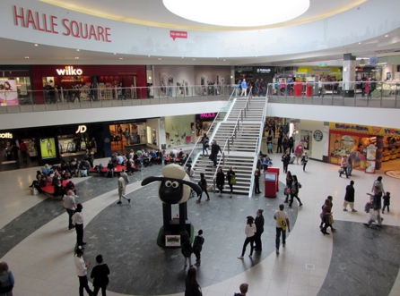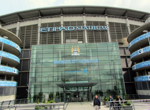 Und wieder begrüßt mich Manchester am späten Morgen mit Regen. Und genau wie gestern löst sich so ab 11 Uhr alles wieder in Wohlgefallen auf. Beim ersten Gang des Tages zur Tram ist es zwar noch feucht von oben, aber letztlich nicht schlimm. Wie erwartet artet dann aber die Sperrung der Tram und der Busersatzverkehr in eine größere Zeitverschwendung aus. Ich muss eine Station fahren und dann bei Exchange Quay in den Bus steigen. Welcher Bus ? Erst nach 10 Minuten oder so bog einer um die Ecke und sammelte die Leute auf. Hier beim ersten Stopp war der Bus dann auch schon voll. Ergebnis war, das er auf den nächsten Stops in die Stadt garnicht mehr gehalten hat. Wüsste ja gerne mal wie lange die Leute die da standen noch warten mussten auf nen Bus. Zuerst dachte ich ja die hätten einfach zu wenige Busse im Einsatz. Aber in der Stadt habe ich dann gesehen, das die Innenstadt ein einziger großer Dauerstau war wo natürlich auch alle Busse feststeckten. Samstag scheint in Manchester Großkampftag zu sein. Schon jetzt am Mittag gabs in der Fußgängerzone und den Shopping Centers keinen Platz mehr. Die Leute in Manchester müssen alle zum einen sehr konsumfreudig sein und zum anderen recht viel Geld haben. Alles in allem hatte es mich jetzt vom Hotel mit Tram und Bus bis zum Piccadilly Gardens fast ne Stunde gekostet. Jetzt aber erst mal Croissant und Kaffee beim Pret. Nachdem ich gestern ja schon bei United war, wollte ich mir jetzt mal das Stadion von Manchester City anschauen. Mit der Tram vom Garden aus nach Etihad Campus war das auch sehr einfach. Das ganze Gelände sieht recht modern aus. Neben dem großen Gebäude mit dem Shop und dem Stadion selbst gibt’s hier noch ein paar andere Sportstätten mehr. Beim Stadion bin ich mal zu beiden Seiten ein wenig rumgegangen. Es war aber alles ziemlich zu. Ob die jetzt ne eigene Stadiontour haben oder sogar ein eigenes Museum das konnte ich nicht erkennen. Zumindest habe ich nirgends prominent gesetzte Hinweisschilder dafür gesehen. Da es jetzt nicht weiter spektakulär war ums geschlossene Stadion rumzumarschieren habe ich dann mit kleinem Umweg über den Fanshop den Rückweg angetreten. Schöne Nike Poloshirts hatten die da. Aber irgendwie sah das XXL verdächtig klein aus. Das habe ich lieber nicht gekauft.