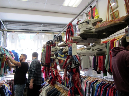 Beim ersten Laden wurde „Vintage clothes by the kilo“ verkauft. Ein Kilo alte Gebrauchtklamotten 15 Pfund. Da hätte man auch locker nen 70er Jahre Film mit ausstatten können von dem was da rumlag. Second Hand Klamotten und/oder Vintage gabs noch in diversen Läden mehr. Die einen verkauften alte Turnschuhe, die nächsten gebrauchte Badeanzüge (!!) und der nächste alle gebrauchten Seidenkrawatten für 7 Pfund das Stück. Geht man die Straße weiter hoch, fängt es an uninteressant zu werden. Spätestens da wo die Adult Stores anfangen kann man ruhig umdrehen. Und auf dem Weg zurück noch in klasse Plattenläden gehen (die stapeln da wirklich noch gutes altes Vinyl die Wände hoch) oder in Comicläden deren angebotener Krimskrams sogar Leonard und Sheldon ehrfürchtig werden lassen würde. Allerdings habe ich Sheldons Game Of Thrones Schwert nicht gefunden. Schade :)