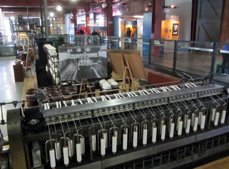 Gegenüber ist dann der „neuere“ Teil des Museums. Wobei das eigentlich mehrere einzelne Fabrikgebäude sind, die durch Wege verbunden sind. Im ersten Gebäude waren alte Computer ausgestellt (nettes Detail : Da war ein hausgroßer Uraltrechner ausgestellt, original mit uralten Röhren und Spulen und so Kram, davor ein Ipad angebracht und der Text dabei : Dieses IPad ist ca. 10.000 mal schneller als der Riesenömmel im Hintergrund). Der Rest des Gebäudes widmet sich Maschinen von Spinnereien und Webereien. Riesige Maschinen für Baumwolle zu bearbeiten und Fäden zu erzeugen und diese dann auf riesige Rollen aufzuwickeln. Das war ganz interessant, da solche Maschinen jetzt nicht unbedingt in jedem Museum rumstehen. War mal was ausgefallenes. Nebenan (ich sage mal in Gebäude 2) waren dann alle möglichen Dampfmaschinen ausgestellt und ein paar ausgefallene Lokomotiven standen auch noch rum. Die Dampfmaschinen für die unterschiedlichsten Einsatzzwecke waren größtenteils übrigens noch in Betrieb, bzw. sie waren lauffähig. Zu bestimmten Zeiten am Tag wurde immer mal wieder eine der Maschinen mit viel Krach und Dampf und Zischen und Fauchen angeschmissen. Da stellen mer uns mal janz dumm …. Watt isse ne Dampfmaschiiiin ?
