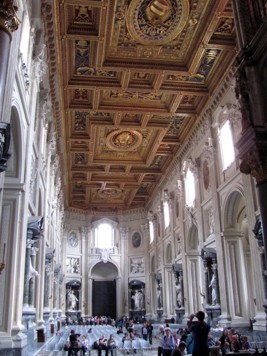 So. Nach dem guten Mittagstisch ging es dann, ist nur ein kurzer Fußweg, zur Lateranskirche. Schon der große Obelisk auf dem Platz davor ist sehr beeindruckend. Die Lateranskirche ist eine von einer Hand voll bedeutenden Kirchen in Rom und war irgendwann ganz früher sogar mal Pabstsitz. Beeindruckend innendrin sind im Hauptschiff die überlebensgroßen Statuen der zwölf Apostel. In einer Krypta unter dem Hauptaltar sollen sich zudem angeblich die Köpfe von Petrus und Paulus befinden.