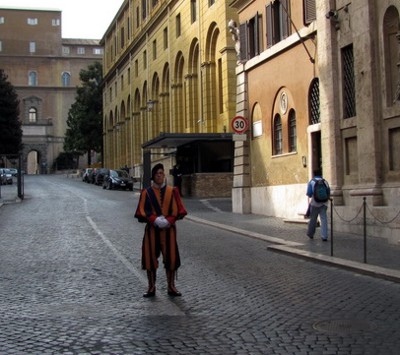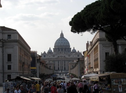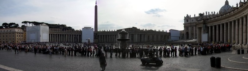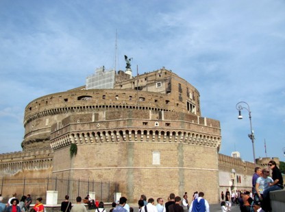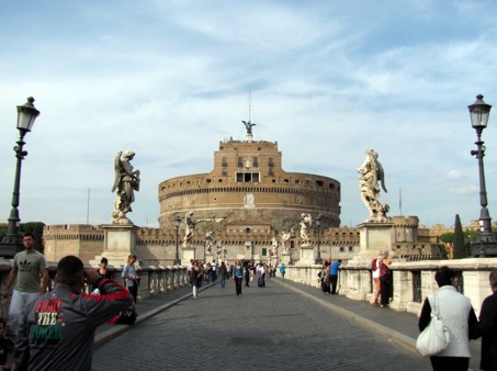 Ich habe mich wieder abgesetzt und bin mit der UBahn zur Station Ottaviano gefahren. Beim Vatikan wollte ich nämlich noch kurz vorbeischauen. Schon auf dem Weg von der Station zum Vatikan ist mir der unglaubliche Betrieb aufgefallen. Als ich dann da war, konnte man vor lauter Leuten nicht mehr treten. Die Schlange für in den Petersdom stand einmal komplett über den ganzen Petersplatz und am Rand nochmal rum. Sowas hatte ich im Leben noch nie gesehen. Ich habe mir das Spektakel noch ein wenig angeschaut und mich dann zur Engelsburg verzogen. Bei der Engelsburg habe ich noch ein wenig Rast gemacht. Rein wollte ich nicht, weil hier auch wieder 8 Euro Eintritt verlangt wurden und ich nun endgültig keine Lust mehr hatte diese teuren Eintrittspreise zu bezahlen. So habe ich mir noch ganz umsonst die Statuen auf der Engelsbrücke einmal angeschaut und mich dann schließlich zur Bushaltestelle in der nähe der Engelsburg begeben.