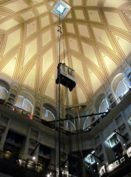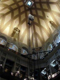 Leider hatten das Museum auch noch andere gefunden, so das ich draußen ca. ne Stunde in der Schlange gestanden habe um reinzukommen. Der Eintritt für das Museum und die Benutzung des Panoramaaufzuges zur Turmspitze kostete 9 Euro. Zumindest die Fahrt mit dem Aufzug sollte man sich nicht entgehen lassen. Der Aufzug hat keinen klassischen Aufzugsschacht, sondern ist fast freischwebend oben in der Kuppel aufgehängt und komplett aus Glas, so das man absolut geniale Blicke nach oben in die Kuppel die auf einen zukommt oder nach unten auf den Boden der sich quasi frei von einem wegbewegt hat. Klasse.