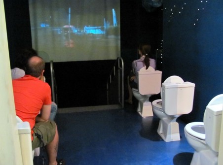 Wieder unten gings dann noch ins Museum, war ja schließlich bezahlt. Naja. Es standen ein paar kuriose Filmrequisiten rum, in Liegesesseln konnte man alte (italienische) Stummfilmklassiker schauen und rund herum um das große Auditorium waren ein paar "Themenräume" untergebracht. Alles in allem nicht sonderlich spannend. Kann man aber mal machen (wenn man mit dem Aufzug fährt, und man eh schon mal da ist). Wieder draußen bin ich zwecks Stärkung direkt gegenüber in eine Pizzeria eingefallen. Hatten, wenn ich mich erinnere irgendeinen spanischen (?) Namen. Dort gabs eine ziemlich genial leckere Pizza die scheinbar komplett nur aus Knoblauch und Peperoni bestand. Man nur gut das ich am Abend alleine gepennt habe. Nach der Pizza hat man wie ne Knobi-Fabrik gestunken (allerdings hatte ich später beim U2 Konzert auch nicht mehr Platz um mich rum. Schade).